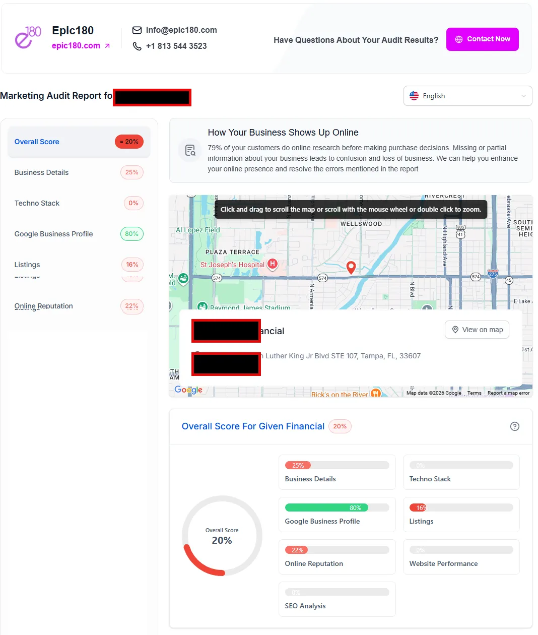 Fill out the short form on the left to receive a comprehensive marketing report like the one above that will help you improve your cleaning company's online presence...